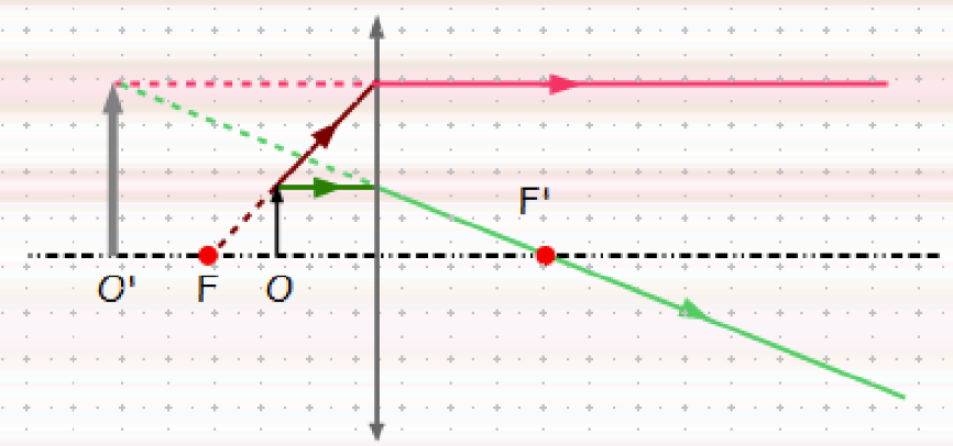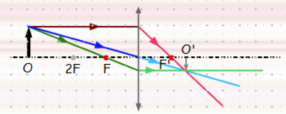 - El raigs paral·lels: Entren en paral·lel i es troben tots en el punt .