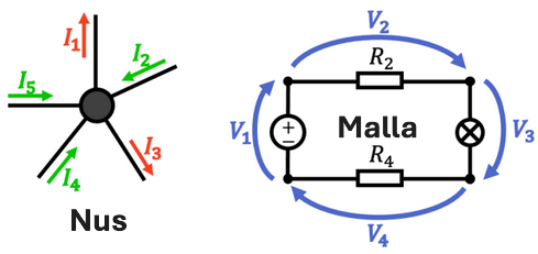 Són dues lleis fundamentals aplicables a circuits electrics. Abans d’explicar-les cal tenir en compte dues definicions Nusos i Malles: